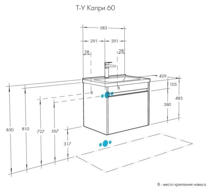 Тумба Капри 60 Таксония тёмная 1A230101KPDB0 с раковиной Миранда-60 1WH302421 АКВАТОН