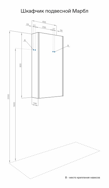 Шкаф навесной Марбл 1A276403MH8A0 Слэйт/Белый АКВАТОН