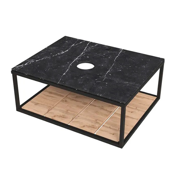 Столешница под накладную раковину из керамогранита LOFT 60 BLACK, чёрный, с полкой 1MarKa