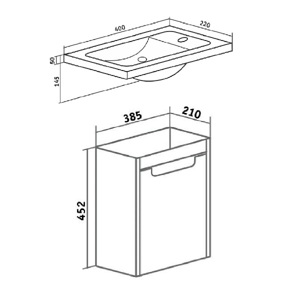 Тумба "Микра 40" подвесная c умывальником Como-40 ## Руно
