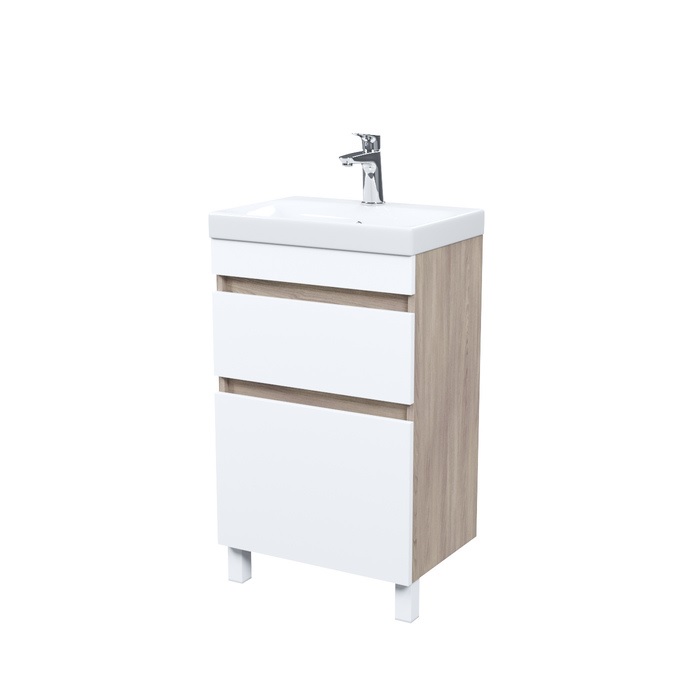 Zodiac-50 тумба напольная ZOD5ABFi95K, 2 ящика, цвет белый/под дерево, с умывальником 3505000i28 # IDDIS