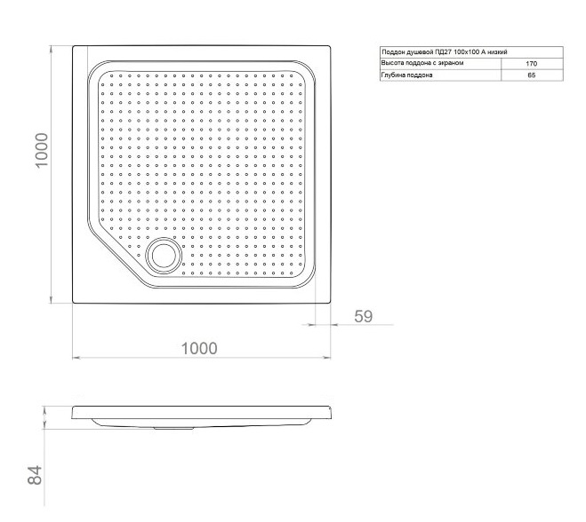 Поддон ПД27 квадрат акрил 100х100х17 низкий, с экраном # ТРИТОН