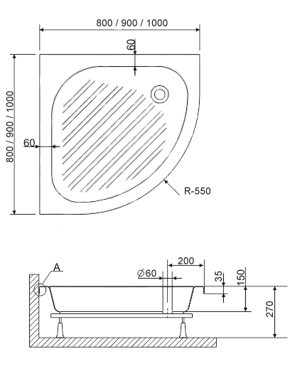 Душевой поддон полукруг BP/CL-S 80х80х27 ножки, без сифона RGW