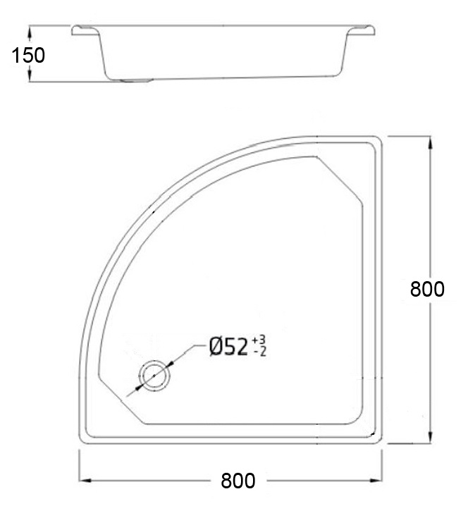 Поддон стальной эмалированный полукруг 80х80х15, слив D50 мм LORANTO