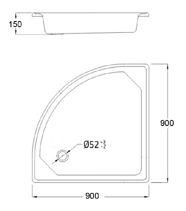 Поддон стальной эмалированный полукруг 90х90х15, слив D50 мм LORANTO