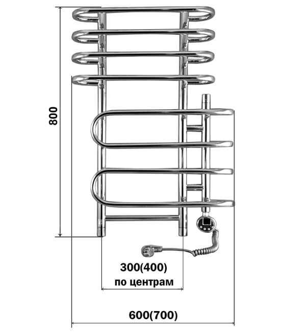 Полотенцесушитель комбинированный электро-водяной КАСКАД 300х600х800 нерж. правый Флагман