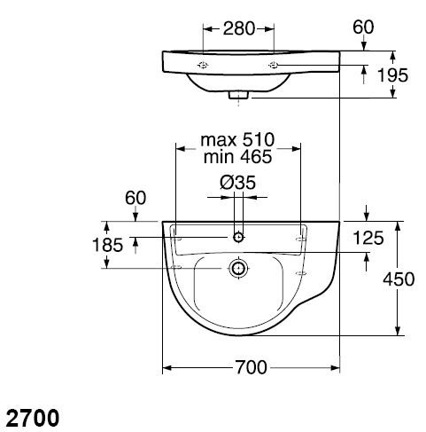 Умывальник Nordic 2700 H (700х450) правое крыло 1127006108 ## GUSTAVSBERG