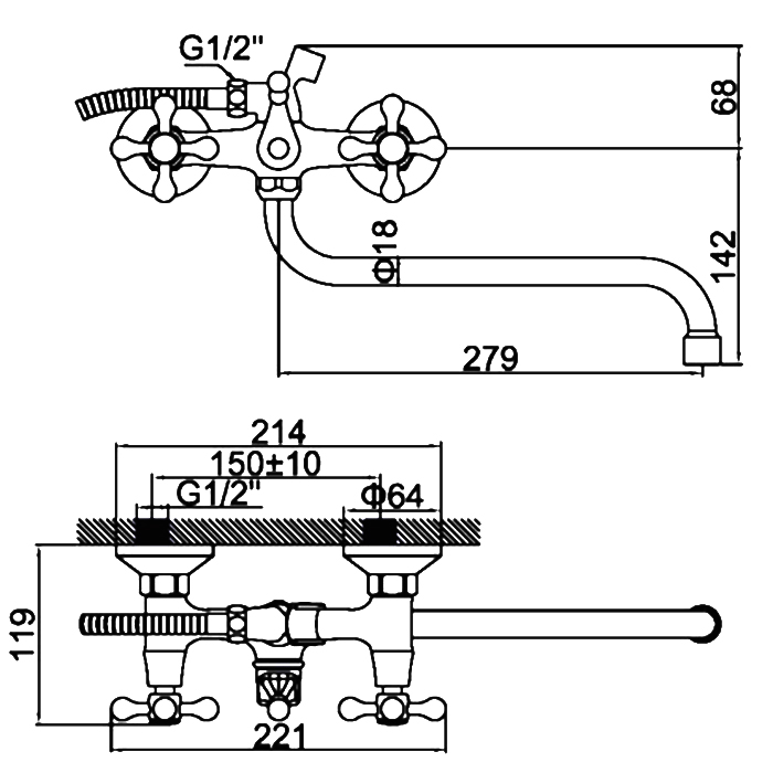 LEDEME Смеситель для ванны L2108 CER LEDEME