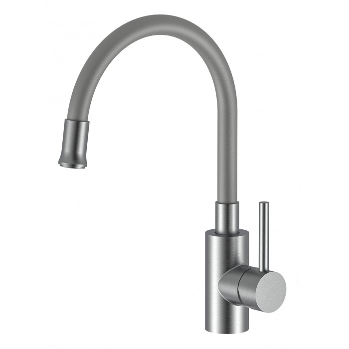 Смеситель для кухни Риф, гибкий излив, нерж. сталь, сатин SANTEK