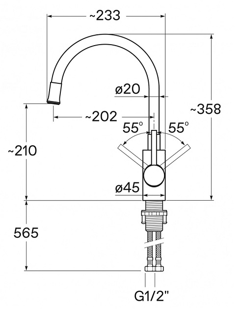 Комплектация: смеситель в сборе, гибкая подводка (2 шт.), монтажный комплект, инструкция, гарантийный талон