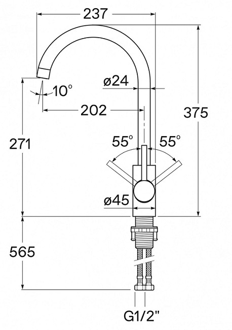 Смеситель для кухни Риф, U-излив, нерж. сталь, белый матовый # SANTEK