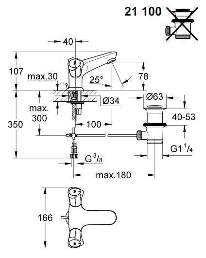 Смеситель для раковины, цепочка, литой излив 100мм 21100001 Costa L ## GROHE