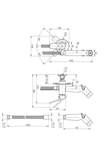 Смеситель с гигиеническим душем FLAVIS 64104 встраиваемый # CERSANIT