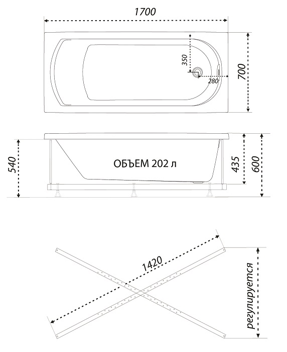 Ванна акриловая 170х70 Дюна ТРИТОН
