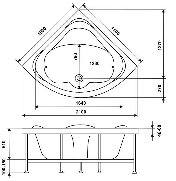 Ванна акриловая RIMINI 150х150 EUROLUX